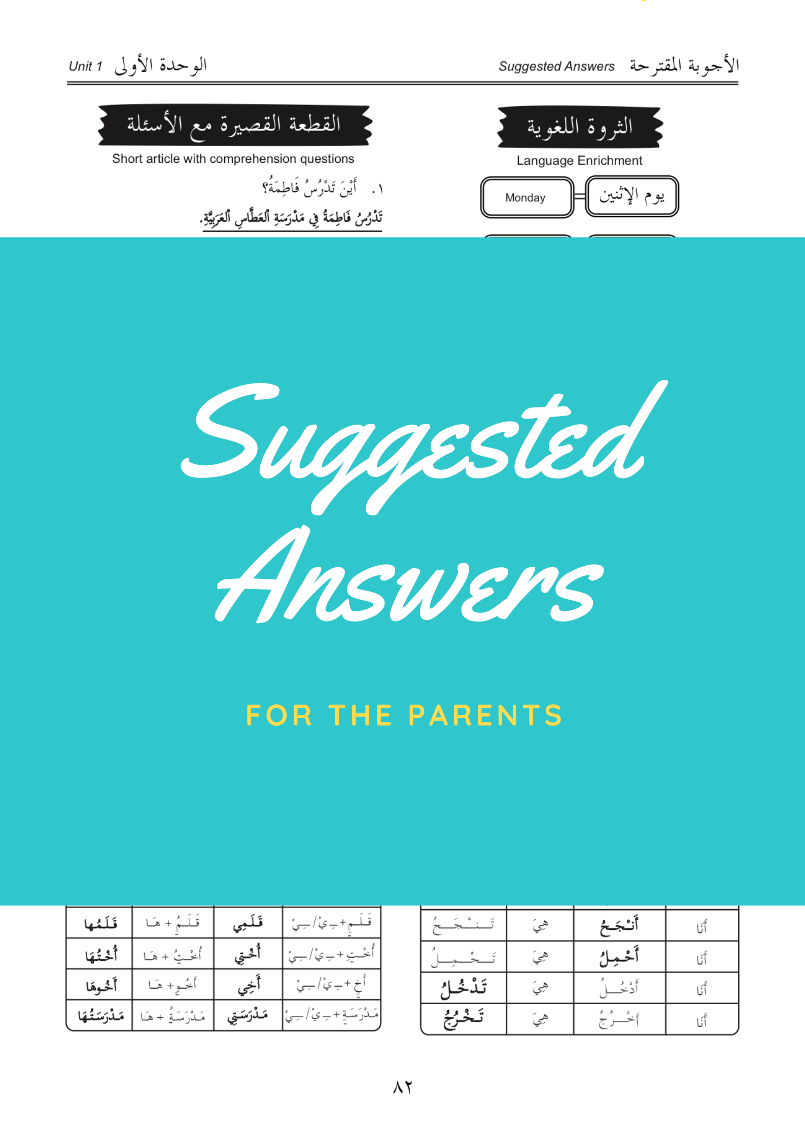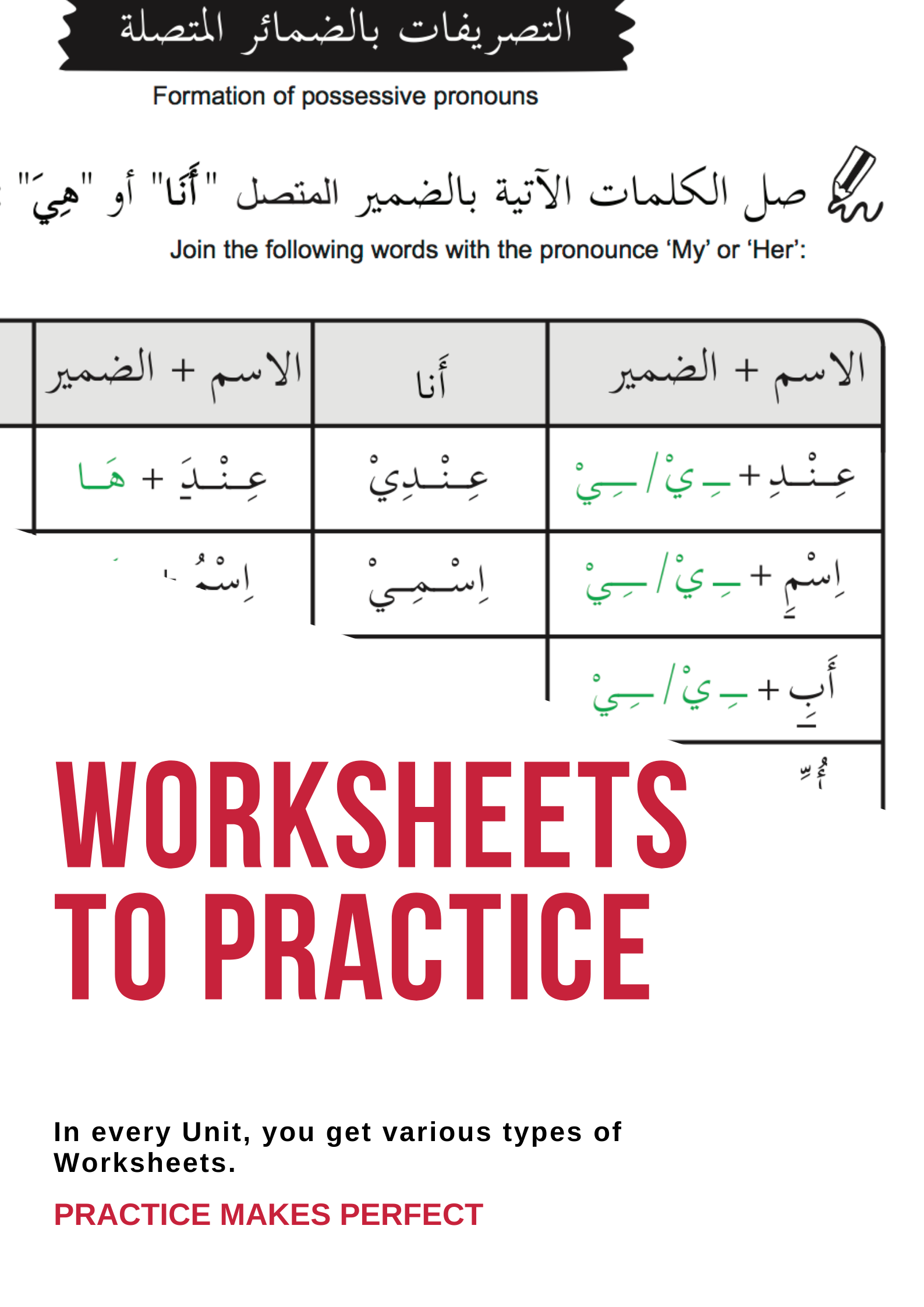 The exercises on Arabic grammar focus only on the single pronouns are carefully designed like stepping stones leading towards greater confidence and learning satisfaction.